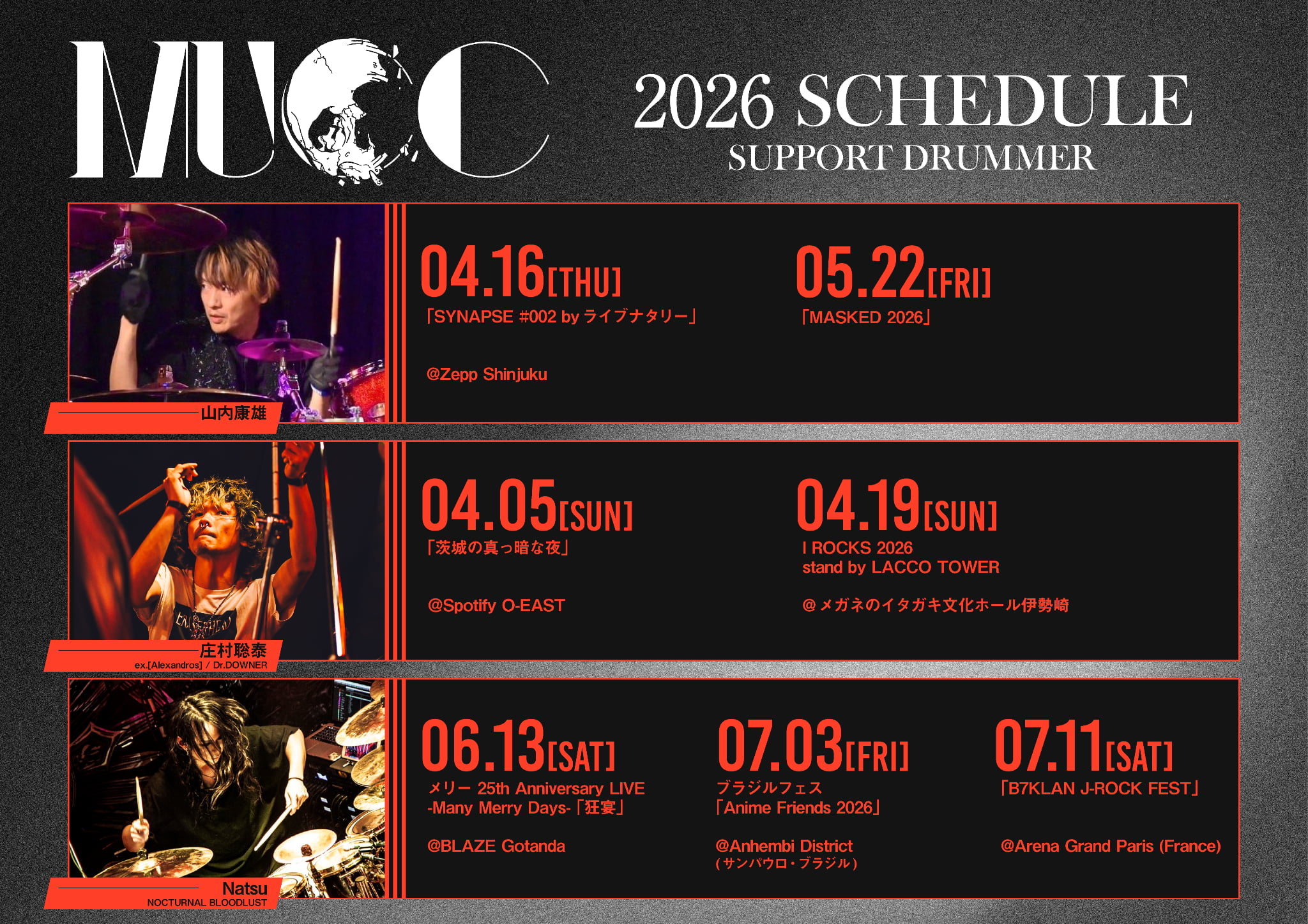 LIVE 2026.02.19MUCC 2026 LIVE サポートドラマー発表 -